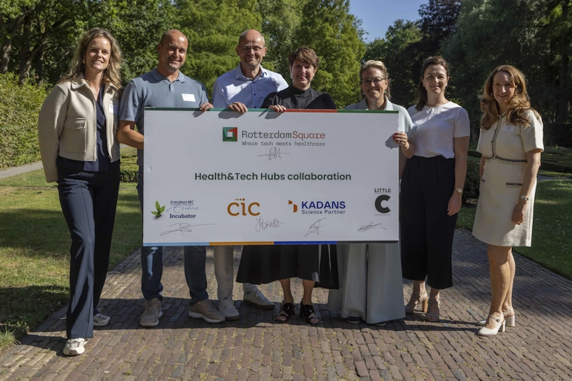 In a significant step towards strengthening Rotterdam’s position as the leading Health&Tech hub of the Netherlands, Rotterdam Square is proud to announce a new collaboration with four strategic locations in the city: the Erasmus MC Incubator, CIC Rotterdam, Rotterdam Science Tower and Little C. Together, they are creating a network of dedicated Health&Tech hubs designed to accelerate innovation and growth for companies in the Life Sciences & Health sector.